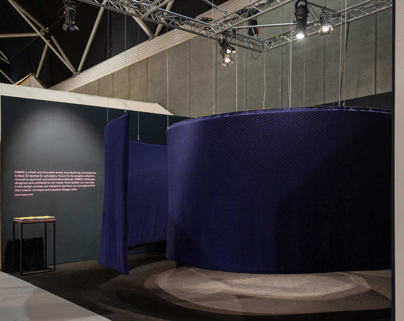 The FEBRIK world in textile. Proportion and volume influence the installation. An experience to tease the senses.